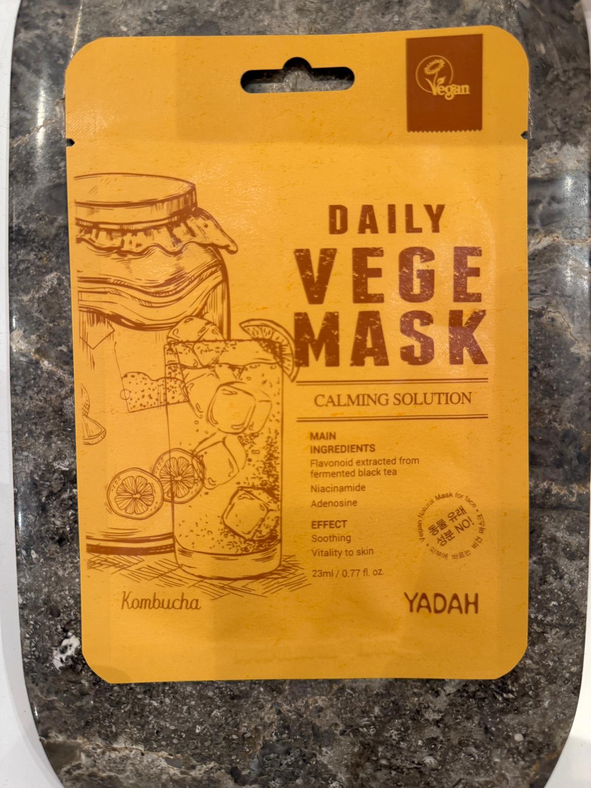 Rasfata-ti pielea cu masca faciala vegana YADAH Daily Vege Mask - Kombucha, formulata cu extract fermentat de ceai negru bogat in flavonoide, probiotice si polifenoli. Aceasta contribuie la revitalizarea tenului, calmarea iritatiilor si protectia impotriva radicalilor liberi, oferindu-i pielii un aspect mai uniform si luminos.