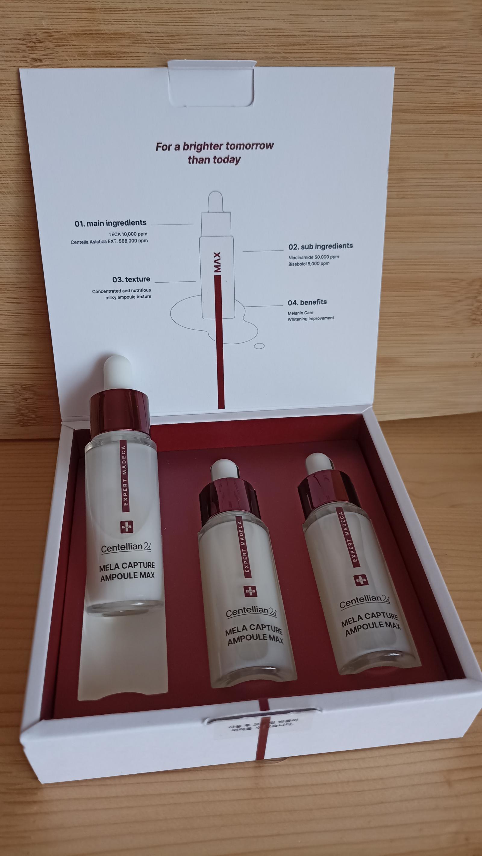 Centellian24 Expert Madeca Mela Capture Ampoule Max este un ser concentrat, conceput pentru a corecta nuanta neuniforma a pielii si a reduce petele pigmentare. Formula sa avansata combina extracte botanice si ingrediente active dermatocosmetice, oferind luminozitate, uniformitate si un aspect mai clar pielii.
