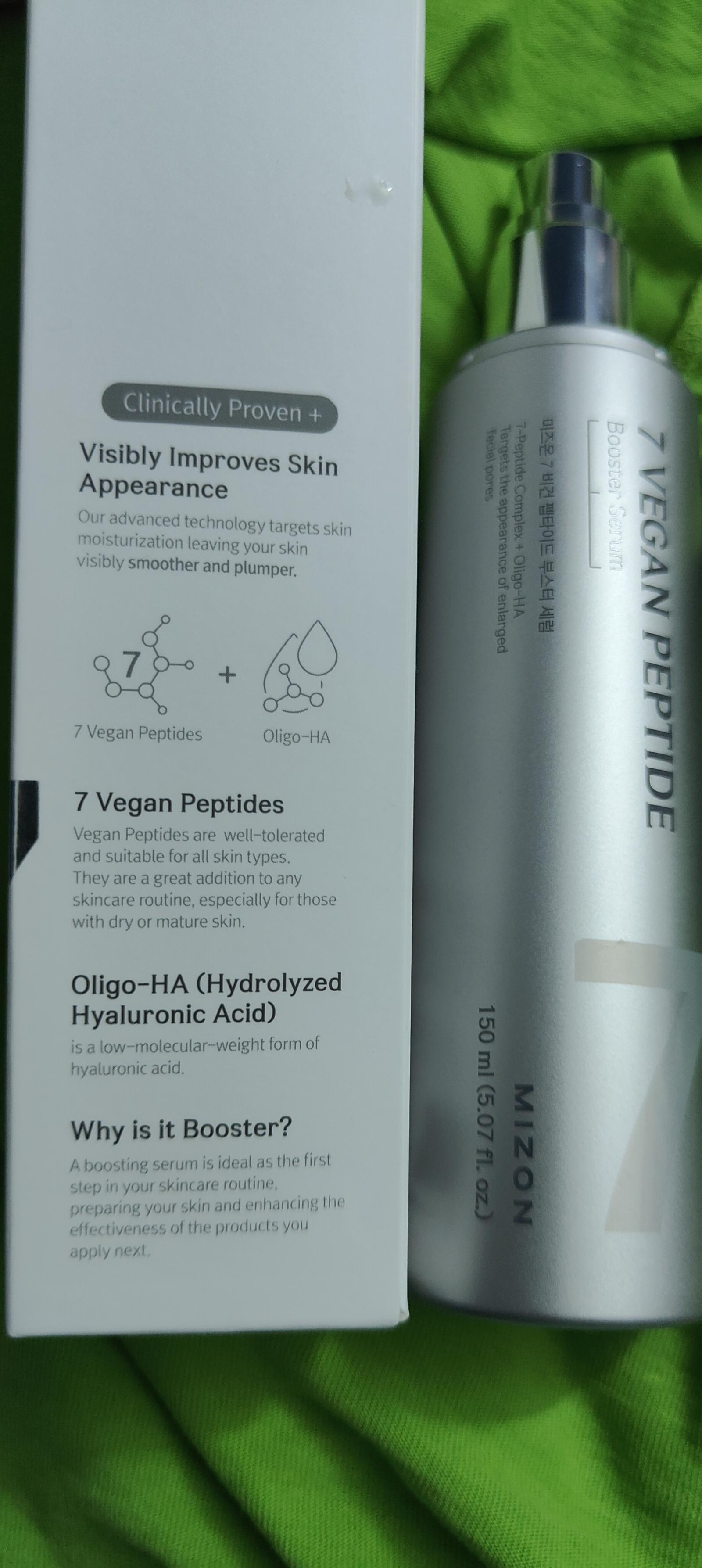 Mizon 7 Vegan Peptide Booster Serum este un ser usor si concentrat, conceput ca prim pas in rutina de ingrijire a pielii. Acesta combina puterea a 7 peptide vegane cu Oligo-HA (acid hialuronic cu greutate moleculara mica), oferind hidratare in profunzime si sustinand elasticitatea pielii inca de la prima aplicare.