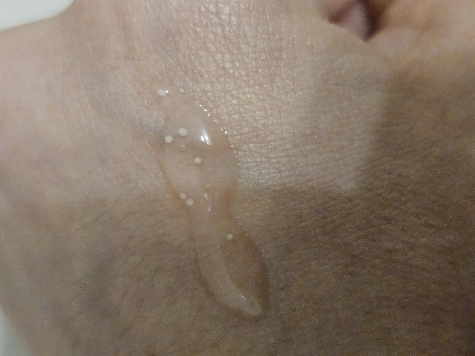 Are in compozitie acele microsfere care se topesc in momentul in care este masat serul pe piele, dar finish-ul mi se pare ca e putin cam lipicios pentru gusturile mele. (Poate combinat cu tonerul din aceeasi gama-nu stiu exact). In rest nu are miros, textura de gel, doar ca finish-ul este putin lipicios.