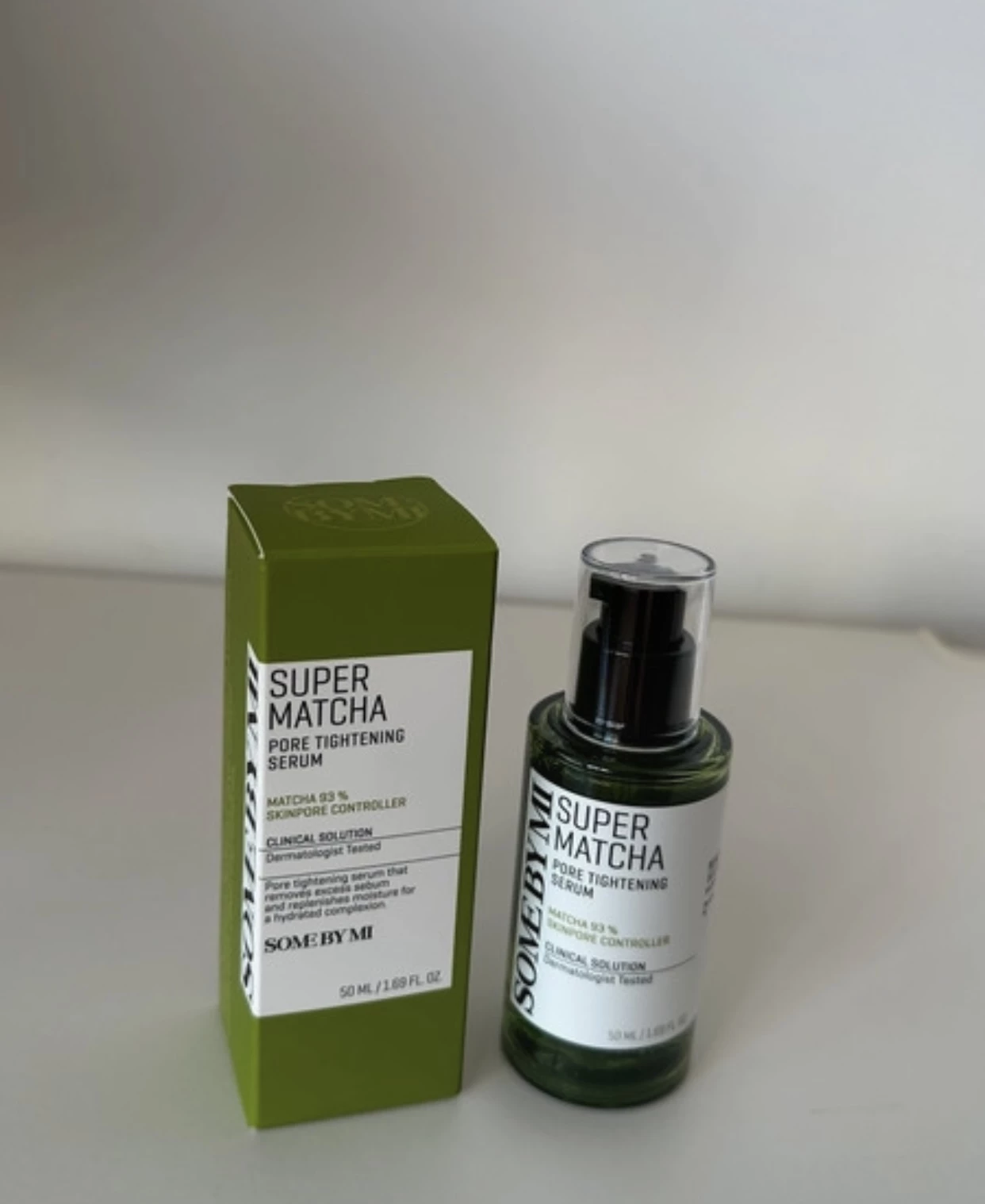Some By Mi Super Matcha Pore Tightening Serum este un ser concentrat, creat special pentru a reduce aspectul porilor dilatati si pentru a echilibra excesul de sebum. Formula sa inovatoare contine extract de matcha, cunoscut pentru proprietatile sale antioxidante si calmante, alaturi de ingrediente patentate precum Anti-Sebum P si Skinpore Controller, ce actioneaza sinergic pentru a regla nivelul de sebum si a mentine tenul curat si proaspat.