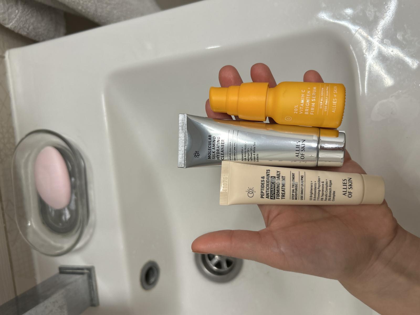 Am primit setul ca si cadou si sunt foarte incantata. Dimensiunea acestuia este perfecta pentru calatorii. Serumul cu vitamina C chiar face minuni pentru tenul meu, iar crema de zi imi lasa pielea catifelata si hidratata. Recomand cu drag acest set pentru oricine vrea sa incerce produsele Allies of Skin.