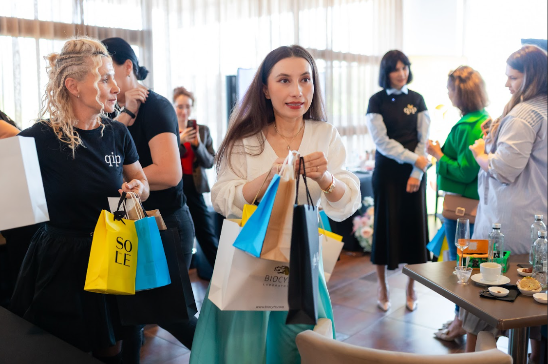Networking autentic – participantele au discutat între ele despre provocări comune (acnee adult, hiperpigmentare post-inflamatorii, sensibilitate crescută), creând conexiuni reale, nu doar contacte superficiale.