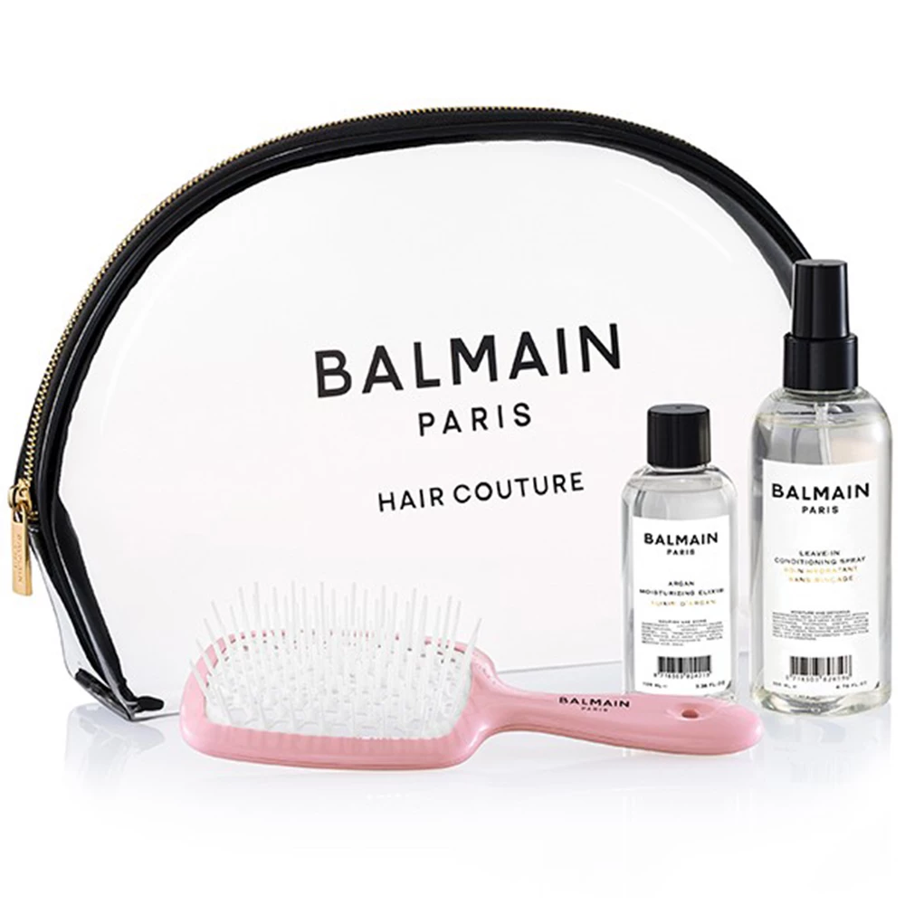 Balmain lanseaza mereu tendintele care pun in lumina reflectoarelor frumusetea naturala a parului. Dar hei, stii si tu, stim si noi: parul are nevoie de ingrijire temeinca pentru a arata fabulos fara sa para ca am facut mari eforturi. De fapt, exact acea frumusete naturala este cel mai dificil de obtinut daca parul nostru sufera. Si sufera, de cele mai multe ori! Il coloram, il vopsim, il stilizam. Si atunci, merita sa se revigoreze cu editia limitata Balmain Paris Hair Couture. Vorbim despre un pouch transparent care contine tot ce iti trebuie pentru un par de senzatie: elixirul de hidratare cu ulei de argan, spray-ul balsam leave-in si peria Detangling ionica. Sunt lucrurile esentiale pentru ingrijirea parului acasa sau in vacanta, iar daca ai extensii sau folosesti peruci, perii moi se vor comporta exemplar si in aceste situatii.