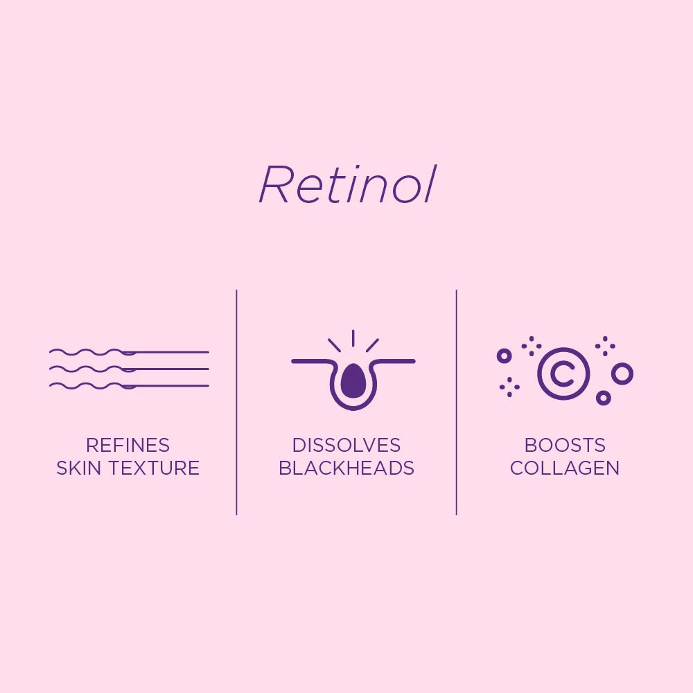 Retinolul exfoliaza celulele moarte ale pielii, dezgropand un ten mai luminos si mai uniform. De asemenea, stimuleaza regenerarea celulara, reducand aspectul petelor pigmentare, al acneei si al cicatricilor.