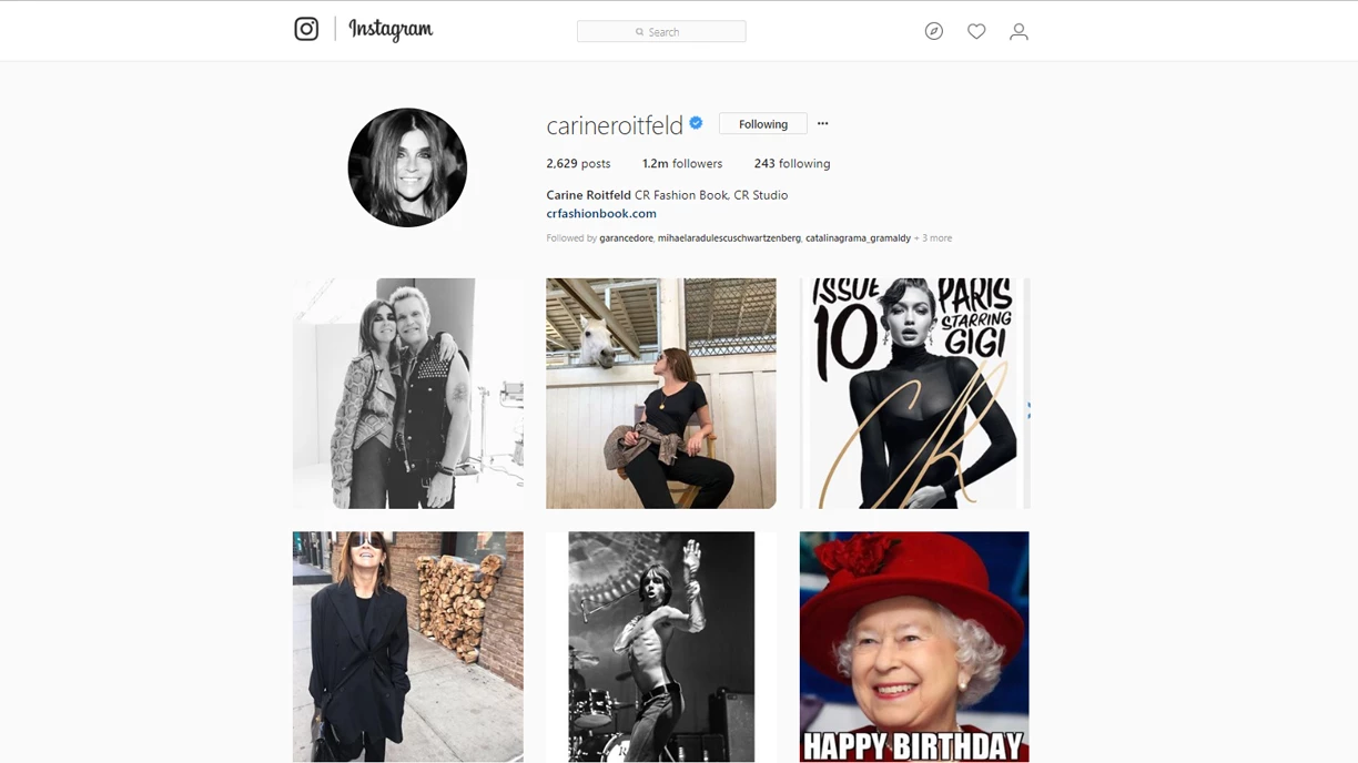 Ce posteaza: Multe imagini cu familia sa, la fel de cool ca ea, imagini de arhiva, instantanee din Paris + designeri, modele si haine. Combinatia perfecta!