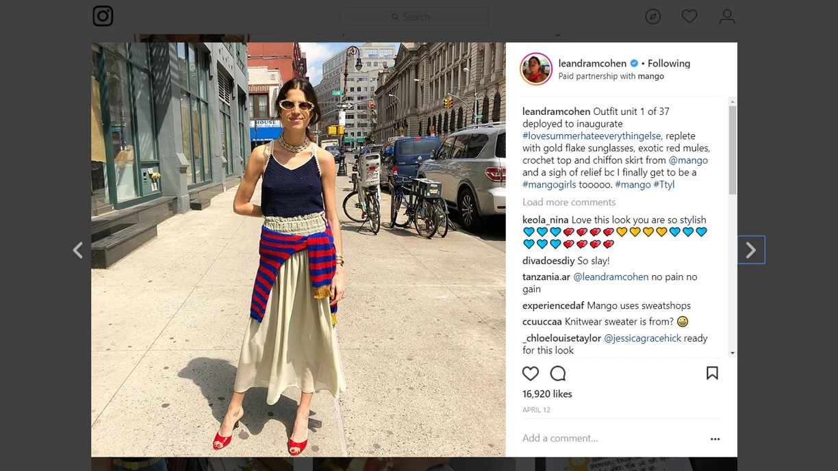 Ce posteaza: Nu se fereste de activism politic, dar ca prin minune aceste merge de minune cu viata sa de model si cu fotografiile care documenteaza viata de zi cu zi, intr-o lume cool si extrem de stylish.