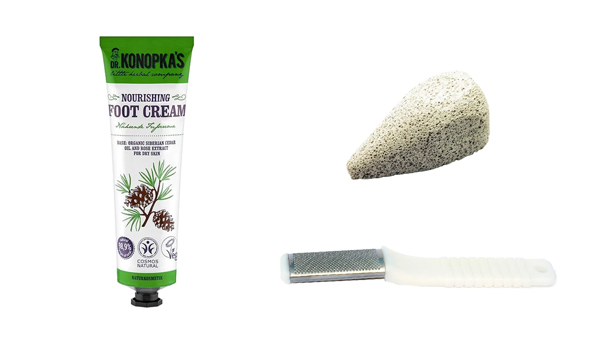 Dr. Konopka. Contine ulei organic de cedru, vitaminele E si F, extract de trandafir, ulei de catina si alte ingrediente hidratante. O poti folosi dupa ce cureti calcaiele, dar si seara de seara pentru a mentine pielea catifelata si placuta.