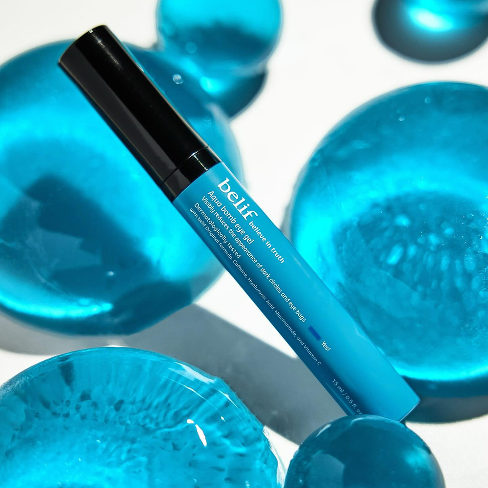 Pentru ca adoram produsele versatile, facem loc in topul nostru cremei formulate de BELIF Aqua Bomb Gel contur ochi Revigorant - secretul unui contur al ochilor vizibil mai odihnit si luminos, un gel contur de ochi cu efect revigorant, imbogatit cu ingrediente puternic hidratante si revitalizante. Formula sa inovatoare, inspirata din ingrijirea coreeana a pielii, combina cafeina si acidul hialuronic pentru a reduce pungile de sub ochi si a oferi o hidratare intensa, in timp ce niacinamida si colagenul contribuie la estomparea cearcanelor si la netezirea liniilor fine. Textura de gel ofera o senzatie racoritoare in zona ochilor, in timp ce varful ceramic aplica produsul cu o precizie deosebita, stimuland circulatia si ajutand la absorbtia rapida a gelului pentru un efect racoritor si calmant imediat.