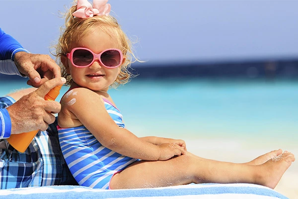 Pielea copiilor este destul de sensibila la compusii chimici care se afla in majoritatea cremelor solare. De aceea, atunci cand consulti eticheta produselor de protectie solara pentru copii, cauta oxidul de zinc sau dioxidul de titaniu, deoarece acesti doi compusi sunt mai bine tolerati de pielea copiilor. Si, bineinteles, pentru a evita eventualele arsuri sau neplaceri cauzate de expunerea la soare, pielea copiilor este cel mai bine protejata cu o crema cu un factor de protectie mare – 30 sau 50 SPF, si care ofera protectie atat impotriva razelor UVA cat si UVB. Vezi aici selectia.