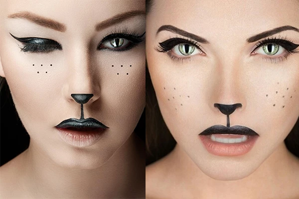 Poate cel mai simplu si eficient machiaj de Halloween il reprezinta cel al pisicii negre. Cu doar putin tus negru si va puteti transforma pe data dintr-o femeie normala intr-o felina periculoasa! Pentru ochi, alegeti un machiaj smokey-eyes, care sa va contureze bine ochii si sa le dea un aer misterios. Nu uitati si de linia de tus alungita la coltul ochilor. Apoi, pictati doar varful nasului cu negru, iar pe portiunea dintre nas si gura trasati 3-4 linii drepte de o parte si de alta, spre exterior, pentru a reprezenta mustatile. Chiar deasupra buzei superioare desenati cu varful unui creion dermatograf cateva punctulete mici pe o parte si pe alta. Pentru un efect mai realistic, pictati si buza superioara cu aceeasi culoare neagra. Gata! Rapid si de efect! Vei arata MIAUnunat la petrecerea de Halloween! Da click aici pentru selectia de produse.