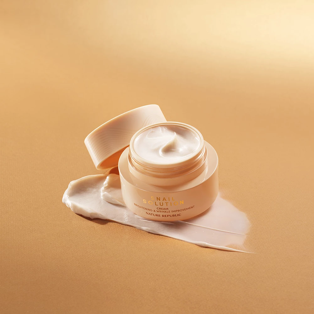 Nature Republic Snail Solution – Cremă de Față Anti-Îmbătrânire (52 ml): Această cremă ultra-hidratantă conține filtrat de secreție de melc, ajutând la reducerea liniilor fine și revitalizarea tenului, oferindu-i un aspect neted și luminos.
